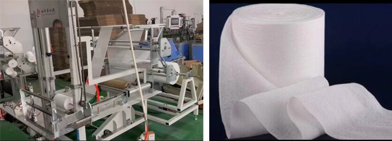 本設備一(yī)次性解決了原紗布卷需(xū)人工包裝的問題,所有工序和動作均由設備自動完(wán)成,包裝(zhuāng)外觀精美,緊實度好,產品(pǐn)一致性好等特點,從根本上解決了由於人(rén)工包裝導致的包紙緊實度不夠,包裝不一致等問題。